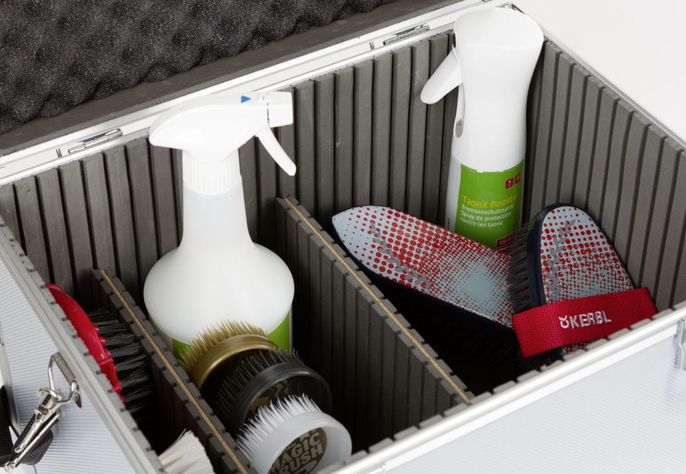 Ein praktischer und stabiler Alu Putzkoffer mit zwei Trennwänden um deine Putzbox so aufteilen zu können, wie du magst. Innen ist der Putzkoffer mit einer Schaumstoffpolsterung ausgepolstert und macht die Box damit super geräumig. Die Außenecken der Putzbox sind verstärkt und sorgen für zusätzliche Stabilität. Die Box hat zusätzlich noch ein praktisches Einlegefach für Kleinteile.