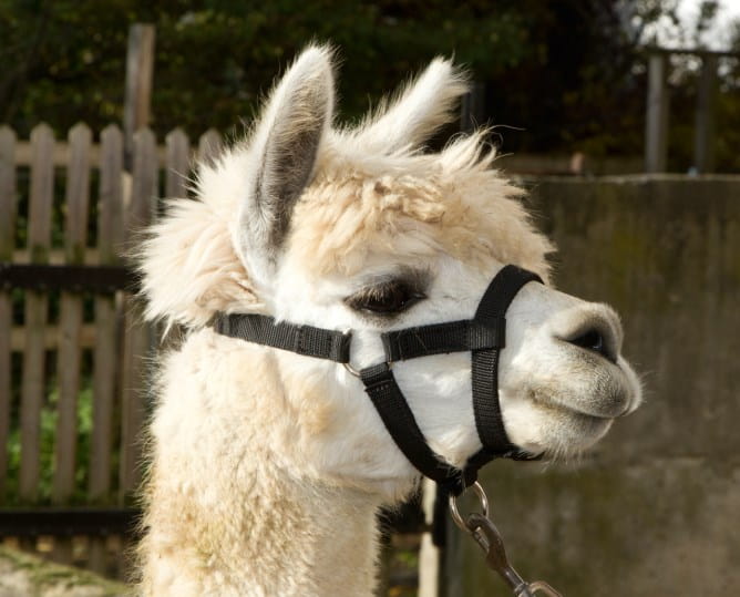 Das Halfter ist mit Schnallen in der Größe verstellbar und dadurch für alle Alpakatypen ab dem ersten Lebensjahr geeignet. Die spezielle Bauart verhindert auch beim Führen einen übermäßigen Druck auf die empfindliche Alpakaschnauze. Mit praktischem Klippverschluss zum schnellen Öffnen und Schließen.