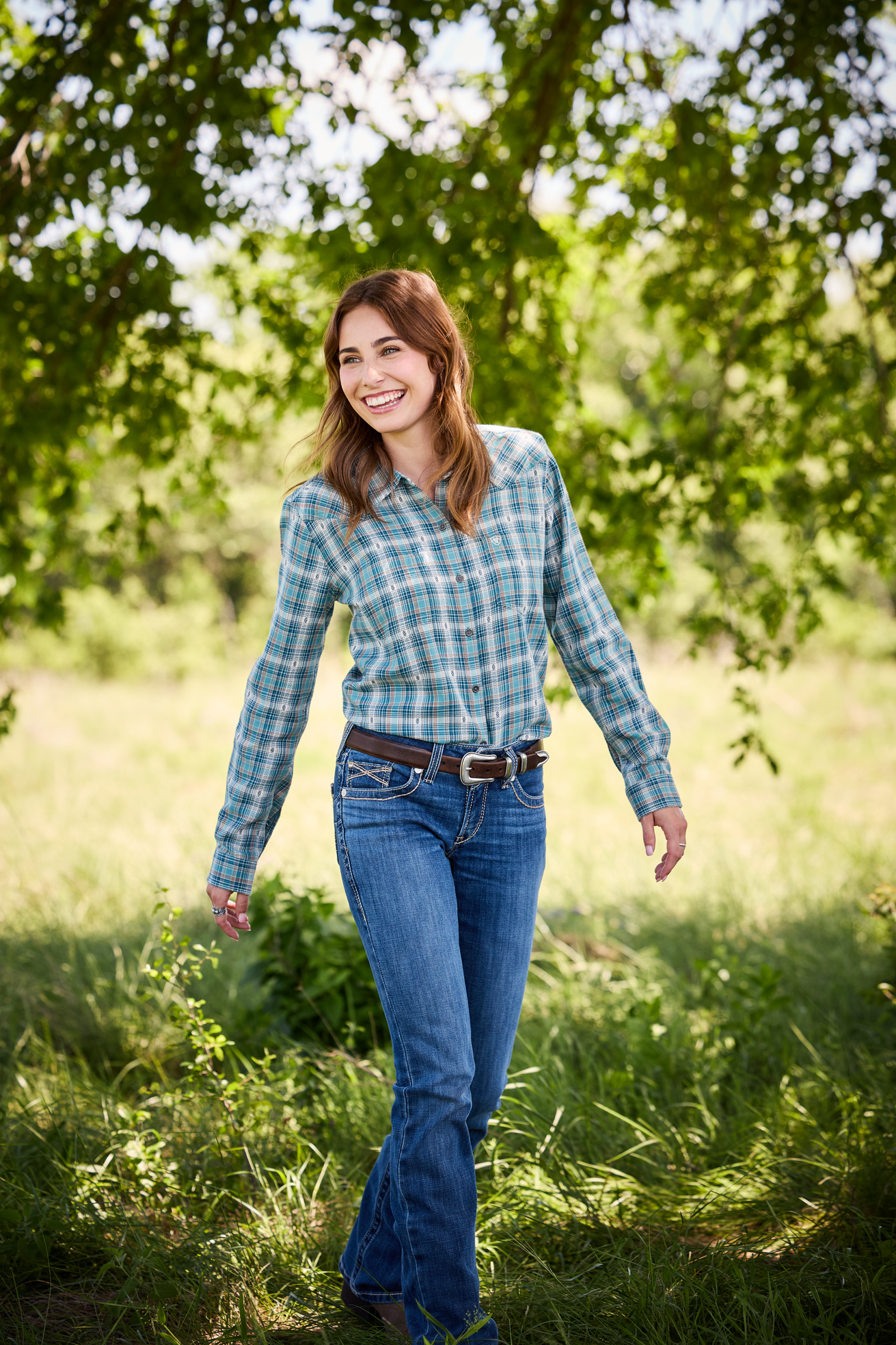 Die Mid Rise Joanna Boot Cut Jeans ist ein echter Ariat-Klassiker für den Alltag. Mit ihrer traditionellen Bootcut-Silhouette und der unverkennbaren Gesäßtaschen-Naht vereint sie authentischen Western-Style mit modernem Komfort. Die mittlere Waschung macht sie vielseitig kombinierbar – perfekt im Sattel ebenso wie in der Stadt.