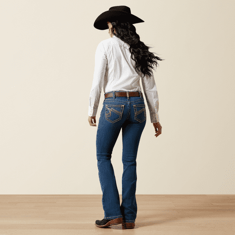 Die Mid Rise Joanna Boot Cut Jeans ist ein echter Ariat-Klassiker für den Alltag. Mit ihrer traditionellen Bootcut-Silhouette und der unverkennbaren Gesäßtaschen-Naht vereint sie authentischen Western-Style mit modernem Komfort. Die mittlere Waschung macht sie vielseitig kombinierbar – perfekt im Sattel ebenso wie in der Stadt.