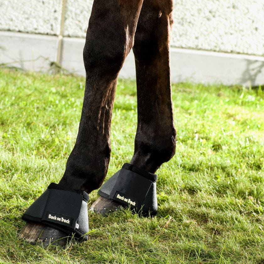 Hufglocken in klassischer Ausführung, mit Kühleffekt. Die Cool on Track™ Hufglocken umhüllen den gesamten Huf, kühlen und befeuchten die Hufkapsel und den Kronrand, wo das Hufwandhorn gebildet wird.Cool on Track™️ ist ein technisches, kühlendes Material, das die Körpertemperatur durch Verdunstung von Wasser um ca. 6° C. senkt. Es kommen keine Chemikalien zum Einsatz und es ist keine Gefriertruhe erforderlich. Das Produkt wird einfach in Wasser eingeweicht, und sobald die überschüssige Flüssigkeit herausgedrückt ist, ist es einsatzbereit.Die Außenseite besteht aus einem robusten Netzgewebe mit großen Maschen, die eine effiziente Verdunstung des Wassers ermöglichen und die Form der Hufglocke beibehält. Die Cool on Track™️ Hufglocken werden mit einem breiten Klettband geschlossen und fixiert.