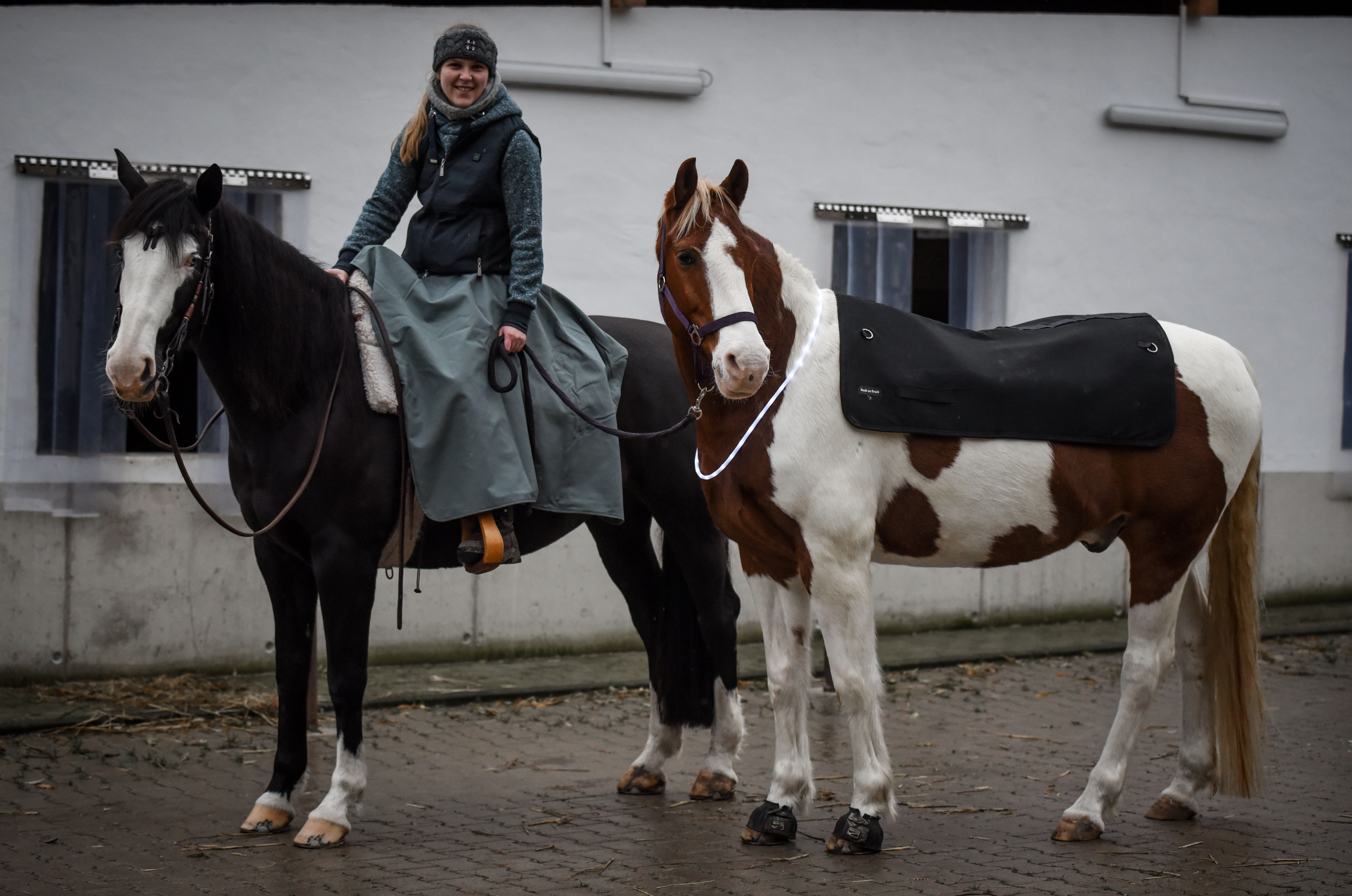 Der Rückenwärmer lässt sich vorzugsweise in Ruhephasen, z.B. auf der Stallgasse verwenden.