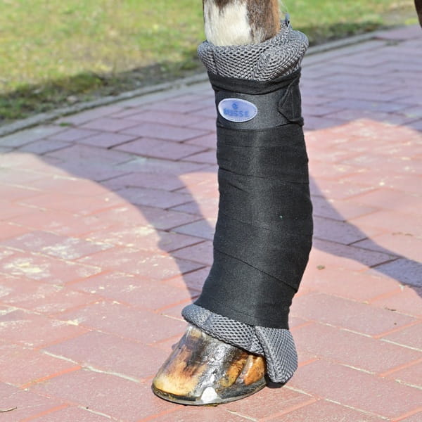 Sie eignet sich zur Ergänzung zum Anlegen einer Stallbandage, zum Beispiel beim Transport oder bei Verletzungen.