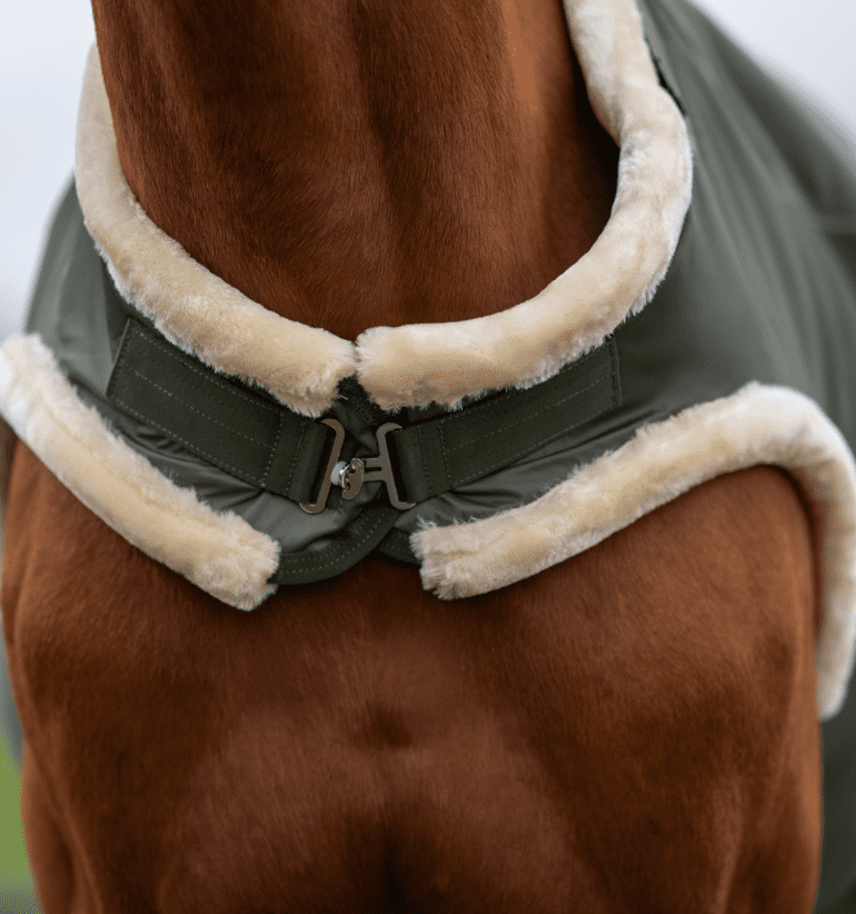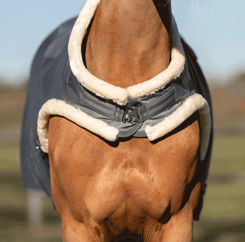 Die Decke kann mit einem Halsteil kombiniert werden, um den individuellen Bedürfnissen des Pferdes nachzukommen.