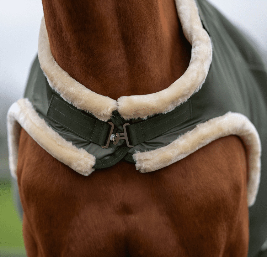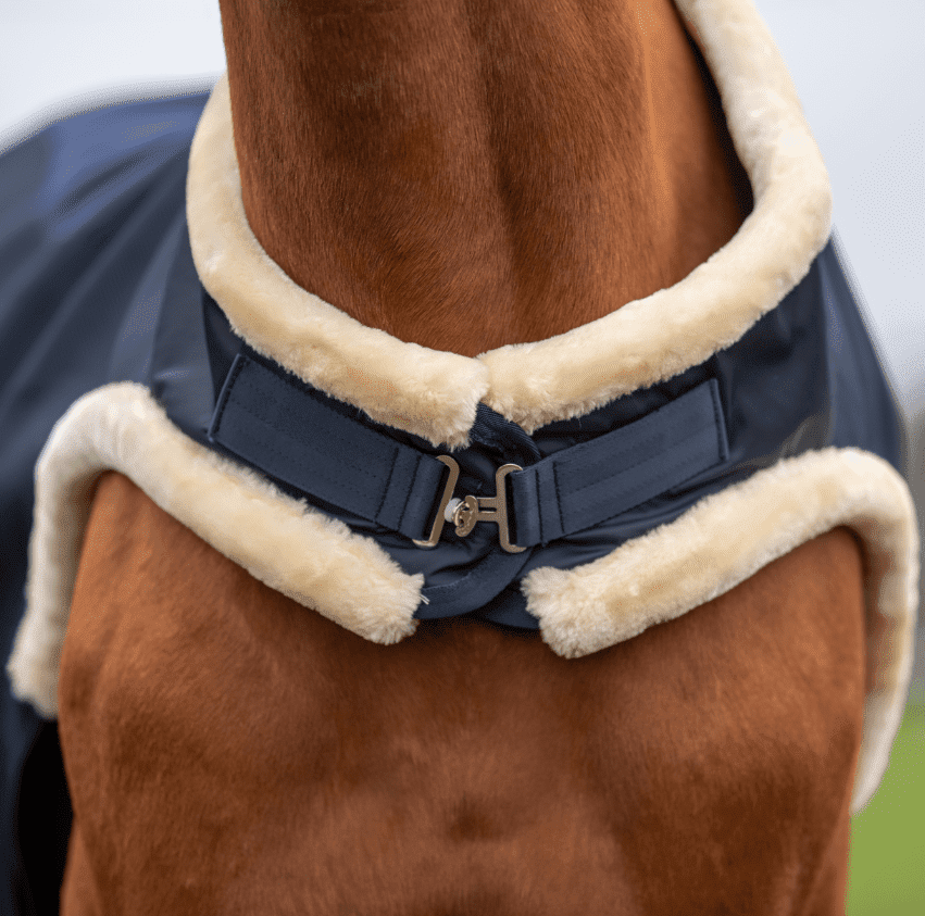 Die Decke kann mit einem Halsteil kombiniert werden, um den individuellen Bedürfnissen des Pferdes nachzukommen.