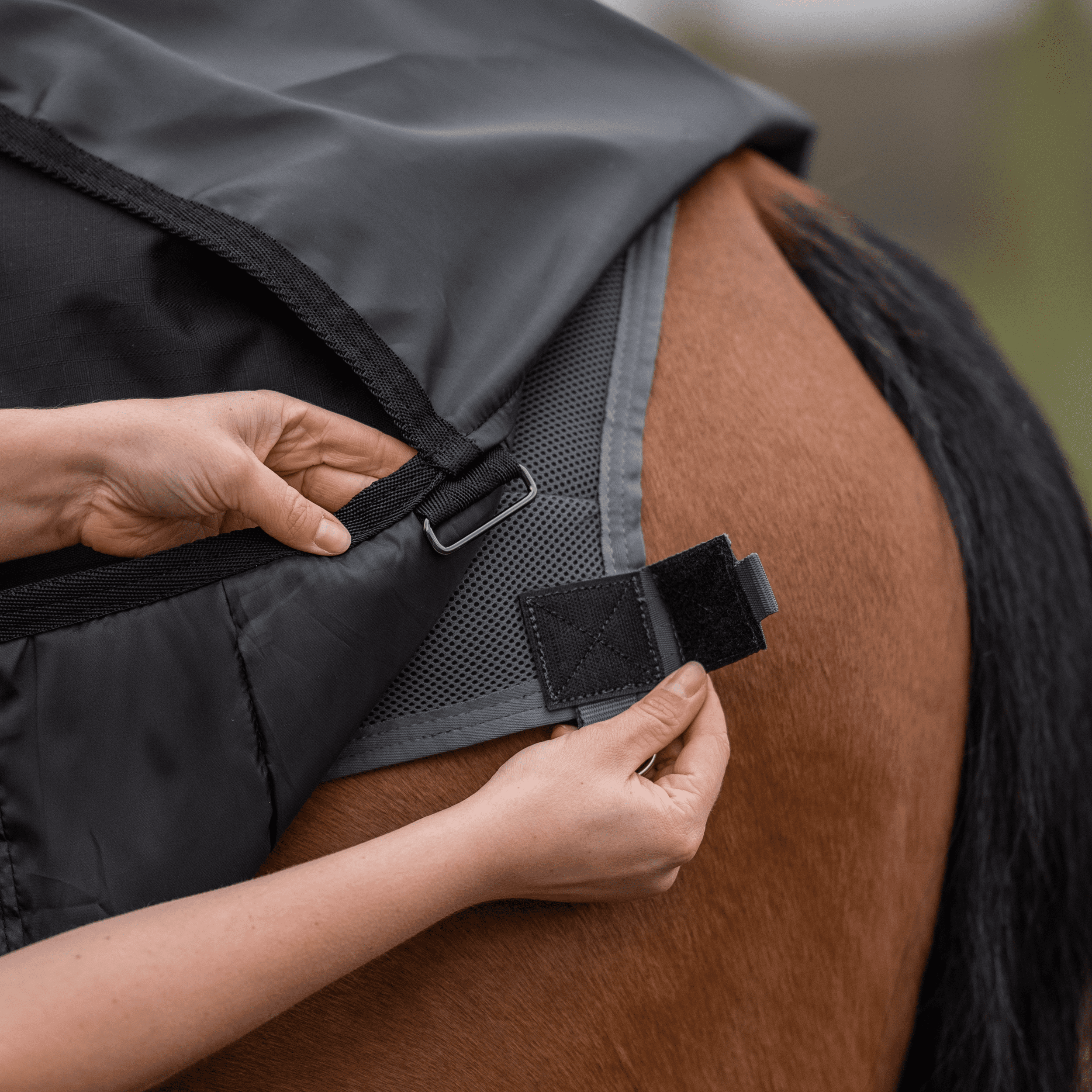 Dank der flexiblen Einsatzmöglichkeiten der Decke, kann problemlos ein Halsteil und/oder ein Liner kombiniert werden, um den individuellen Bedürfnissen des Pferdes nachzukommen. Besonders praktisch: Sie lässt sich dadurch über die ganze Deckensaison einsetzen.