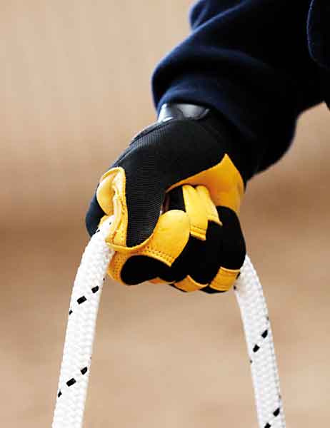 Besonders wichtig bei der Bodenarbeit ist die Verwendung von Handschuhen. Diese ermöglichen dir einen guten Halt am Seil und verhindern Verbrennungen an den Händen, wenn dein Pferd dir doch einmal das Seil durch die Hände ziehen sollte. Die Handschuhe sollten deine Hände gut schützen, im Winter warm halten, aber auch so gemacht sein, dass du trotzdem noch ein gutes Gefühl für Seil und zum Beispiel Peitsche oder Carrot Stick hast. Eine große Auswahl an Sommerhandschuhen, Winterhandschuhen und Arbeitshandschuhen findest du bei uns HIER.
