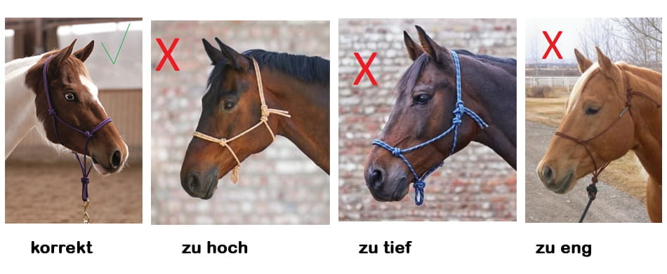 Das Knotenhalfter sollte immer mit Bedacht eingesetzt werden und niemals grob gegen das Pferd verwendet werden.