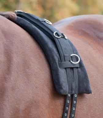 Wenn du mit Hilfszügeln oder mit der Doppellonge longierst, benötigst du für die Arbeit einen Longiergurt. Es stehen dir Longiergurte aus unterschiedlichen Materialien zur Verfügung. Schwerere Longiergurte aus Leder oder auch leichte Longiergurte aus weichem gepolstertem Kunststoff. Wenn du einen Longiergurt verwendest, solltest du meist auch eine Longiergurtunterlage verwenden, damit der Gurt nicht direkt auf deinem Pferd aufliegt. Die Unterlage sollte Polstern und ein Scheuern des Gurtes verhindern.