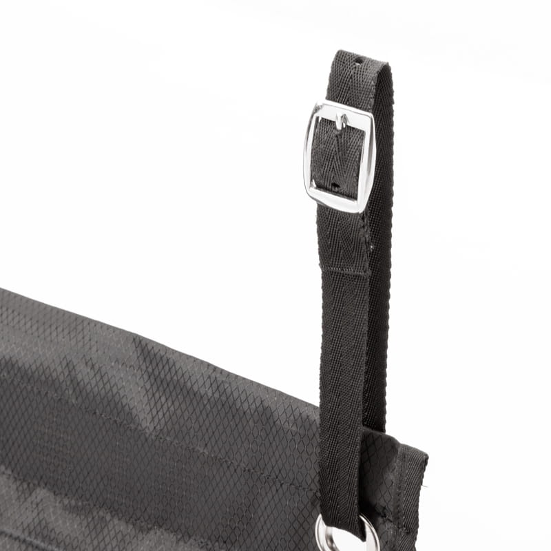 Die Boxentasche Rio bietet viel Platz, ist super geräumig und ermöglicht eine saubere und geordnete Aufbewahrung an der Pferdebox. Die Boxentasche eignet sich hervoragend zum verstauen von Pferdedecken, Bandagen, Gamaschen, Glocken, Pferdepflege und anderes Pferdezubehör. Für die Anbringung der Boxentasche ist keine aufwendige Montage notwendig, sie lässt sich super einfach und bequem zwischen den Pferdeboxen Gittern verschnallen. Eine Schmutzabdeckung schützt den Innenraum der Boxentasche vor Staub und Schmutz aus dem Stall bzw. der Stallgasse. Der Innenraum ist großzügig gestaltet und verfügt über verstärkte Wände und verstellbare Abtrennung. Diese Boxentasche ist ein echtes Raumwunder und verfügt zusätzlich an den Außenseiten über zwei praktische Taschen. Der Clou an dieser Tasche ist, dass man unterhalb der Boxentasche noch eine abnehmbare Stange befestigen kann zum Aufhängen von Schabracken, Pferdedecken, Showblankets oder Gamaschen und Hufglocken.