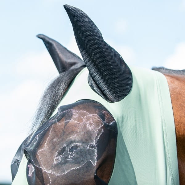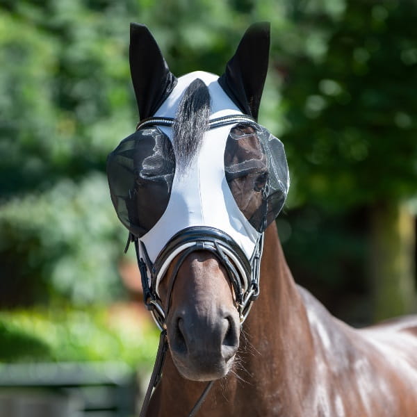 Diese Fliegenmaske hat ebenfalls eine Aussparung für den Schopf.
