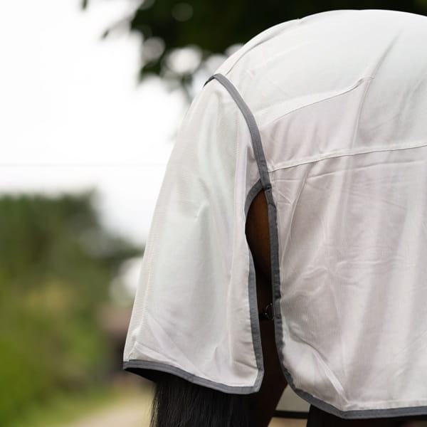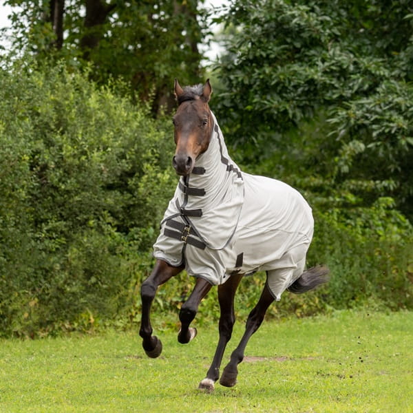 Optimale Fliegendecke für Paddock und Weide, die vor Fliegen und Bremsen schützt.
