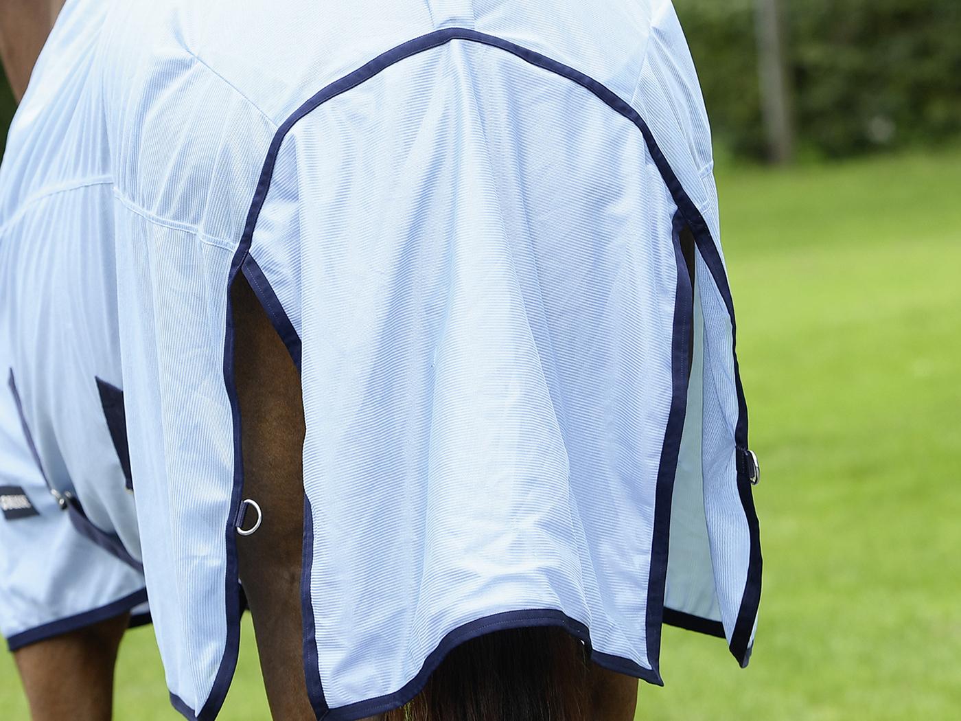 Optimale Fliegendecke für Paddock und Weide, die vor Fliegen und Bremsen schützt.