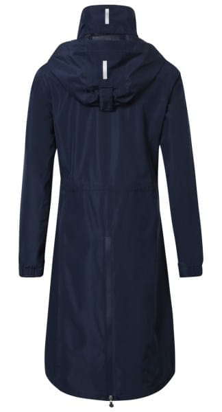 Der Reitschlitz mit Reißverschluss erleichtert das Reiten und schütz den Sattel und die Oberschenkel vor Regen.