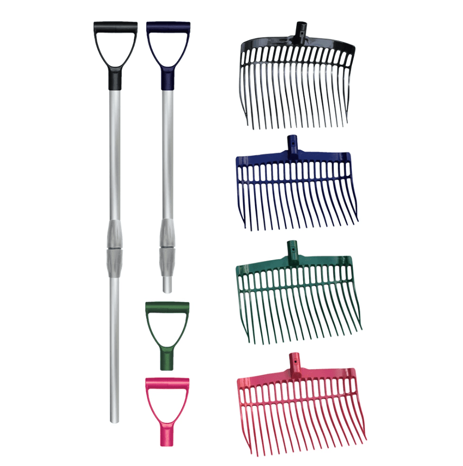 Leichtgewichtiger Stiel aus Alumimium mit Softgriff.In der Mitte teilbar / zusammensteckbar.Dadurch ist der Stiel natürlich leicht transportierbar und passt auch in die kleine Sattelkammer eines Anhängers.Sichere Verbindung der Teile durch einen Snap-Verschluß.Verwendbar mit der Future Fork und der Extra-Fork mit hohen Seitenrändern.