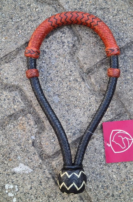 Dieses preiswerte schwarze Bosal ist mit einem Kern aus hochwertigem Rawhide für einfaches Formen und flexible Passform ausgestattet. Es wird komplett mit einem geflochtenen Nasen- und Fersenknoten aus Rohleder mit einem wunderschönen Latigo-Besatz geliefert.
