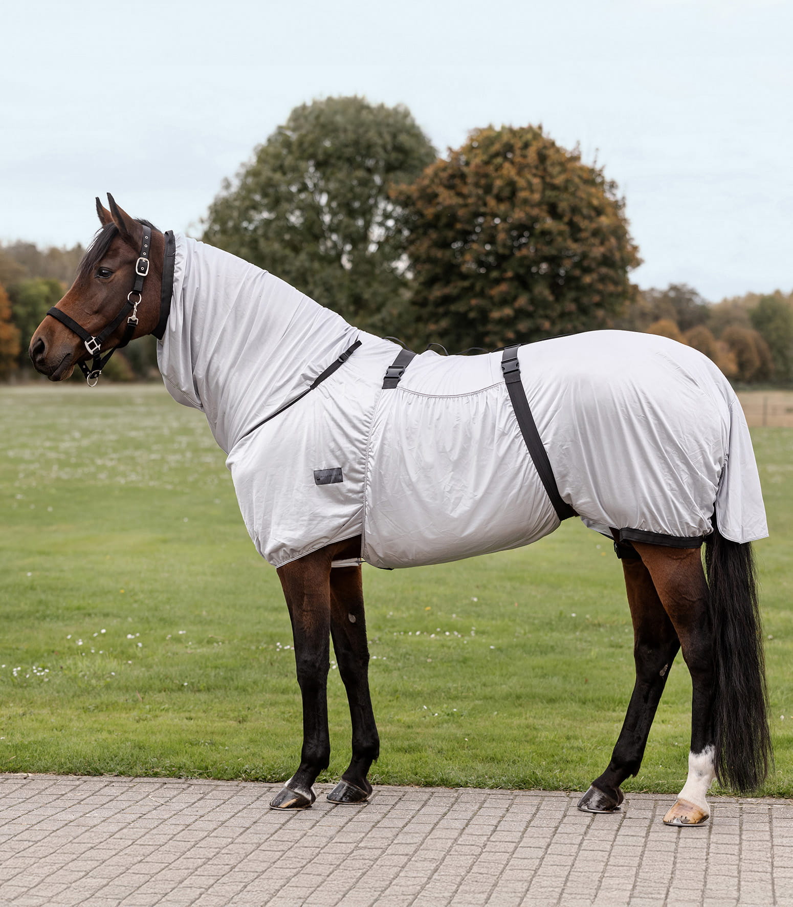 Umfassender Schutz für Pferde mit Sommerekzem aus einem speziellen, atmungsaktiven Funktionsmaterial. Das Produkt verfügt über ein fest integriertes Halsteil und einen breiten Bauchlatz. Die Lieferung erfolgt ohne Maske.