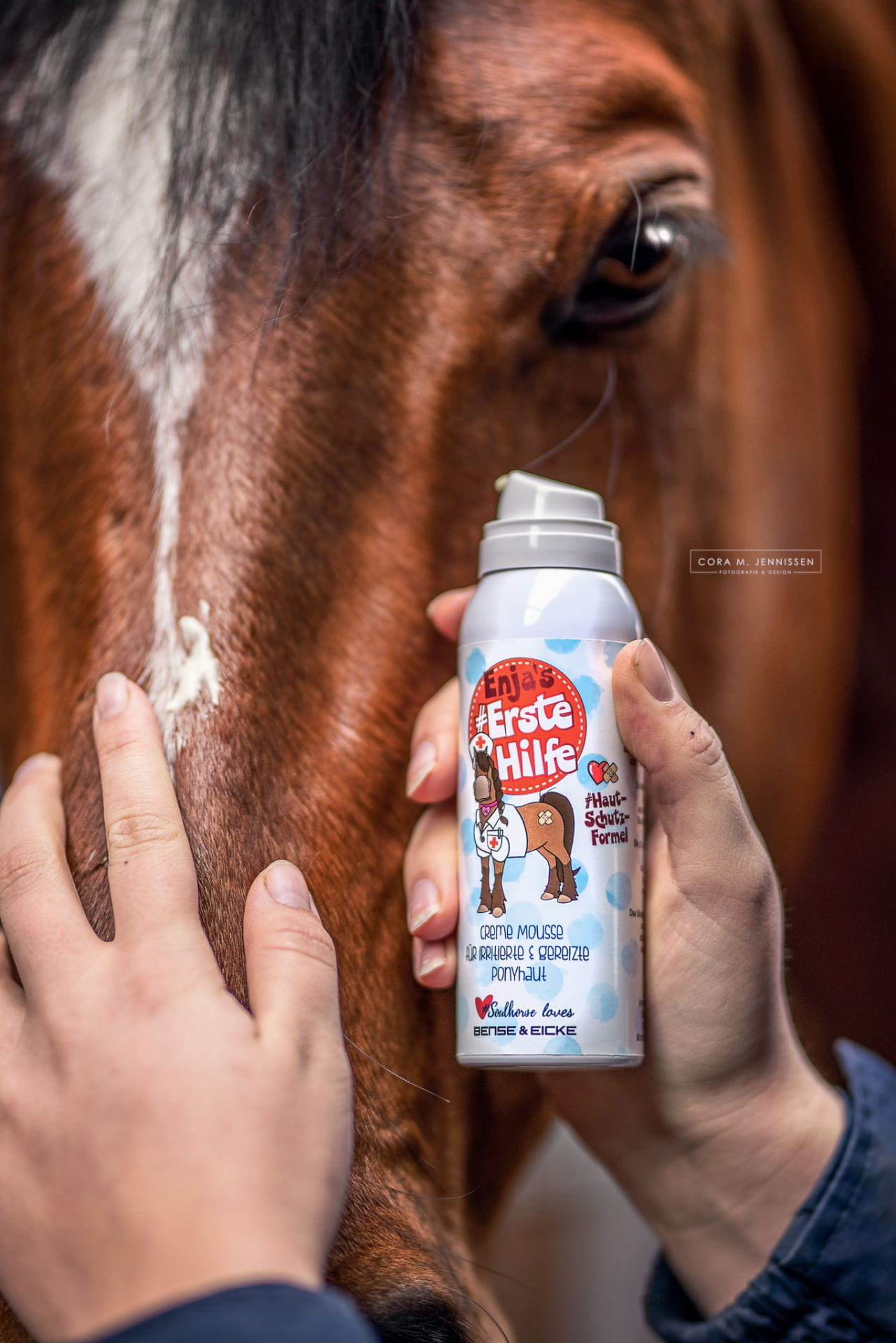 Ein Unfall am Stall ist schnell passiert - Enja`s erste Hilfe ist zur Stelle, wenn‘s mal pressiert. Einfach das Mousse auf die irritierte, trockene oder gereizte Stelle verteilen, das MicroSilver BG™ stabilisiert die Haut und fördert sie sich selbst zu heilen. Die erste Hilfe ist nicht nur für akute Fälle da, auch zur Verbesserung des Hautbilds ist sie wunderbar! Sie pflegt, schützt und generiert auch bei Mauke und bei Sommerekzem hat Enja sie schon erfolgreich probiert.