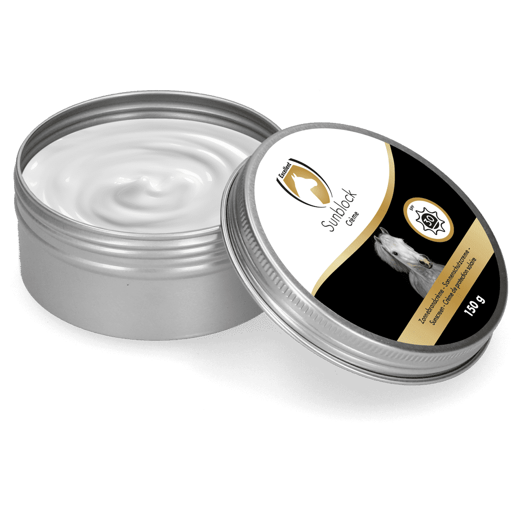 Die Equi Sunblock Sonnencreme klebt nicht und zieht schnell ein.