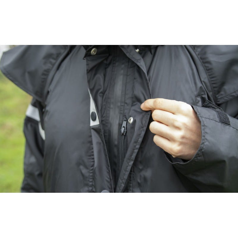 - Wasserdichter Zwei-Wege-Reißverschluss vorne mit Patte zum Knöpfen.