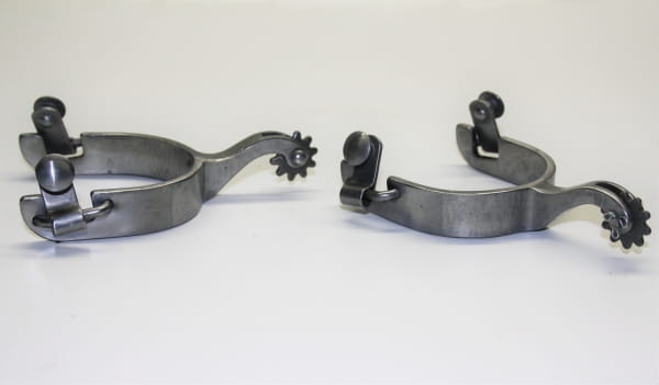 Solide Sporen in einem matten Metallton für Jugendliche. Der Sporenhals hat eine Länge von ca 4,2cm und das Rädchen ist eher sanft. Die Sporen haben eine Schenkelöffnung von 6,8cm und eignen sich daher eher für schmale Füße bis max Schuhgröße 37. Das Rädchen lässt sich leicht austauschen.