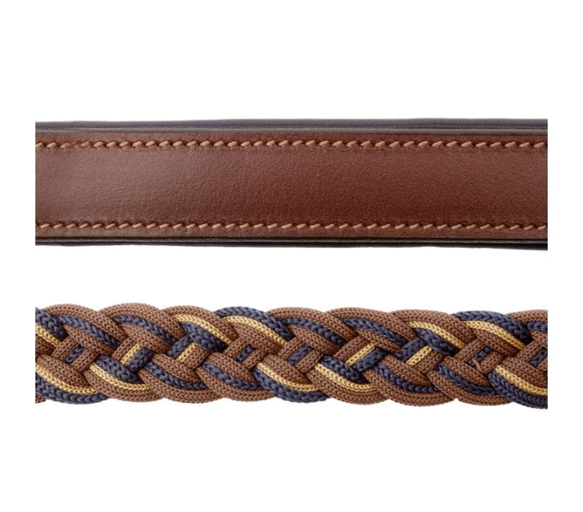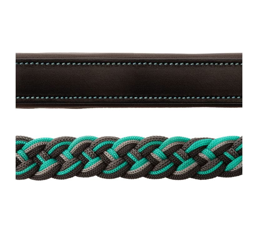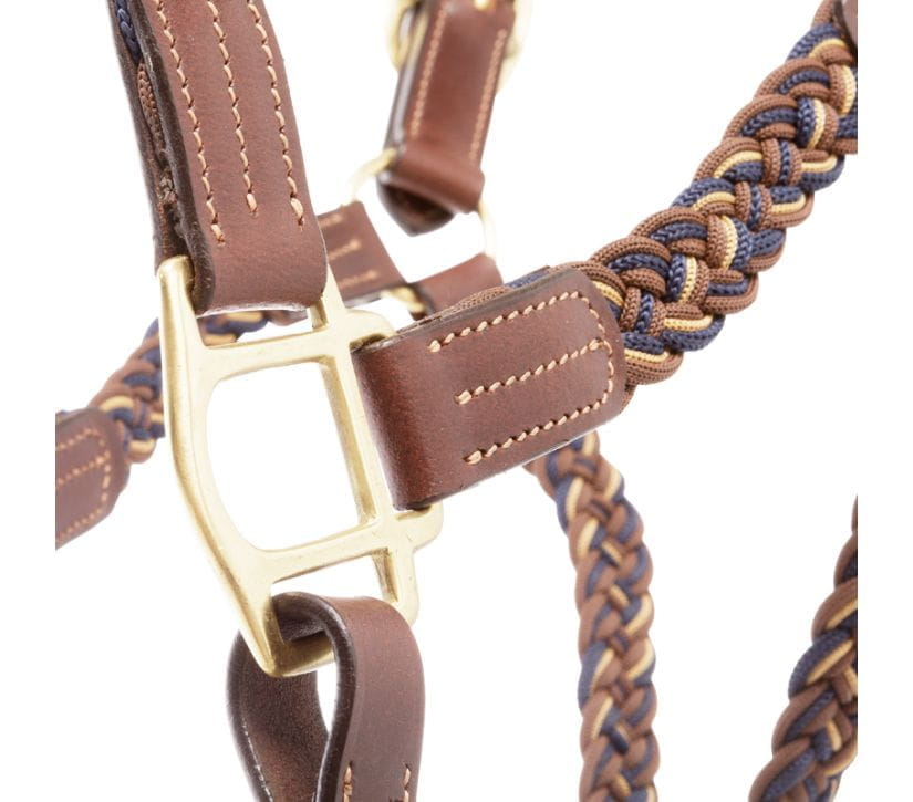 Die Kombination aus geflochtenem Segeltau in verschiedenen Farben sowie den ledernen Elementen verleiht dem Halfter einen verspielten, aber dennoch eleganten und schicken Look. Für eine perfekte Passform kann das geflochtene Halfter beidseitig am Genick sowie am Nasenriemen verstellt werden.