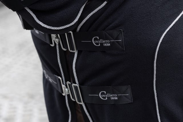 Das innovative Cova-Tex-Material der Decke enthält integrierte Keramikteilchen, die die Durchblutung der Muskeln anregen und dadurch die Regeneration beschleunigen. Das spezielle Material der Covalliero Fleecedecke sorgt für einen angenehmen, wärmenden passiven Physiotherapie-Effekt bei bester Atmungsaktivität. Diese Kombination trägt zu Wohlbefinden und Gesundheit Ihres Pferdes bei. Die Decke eignet sich klassisch als Abschwitzdecke nach dem Reiten und als wärmende Pferdedecke beim Transport. Durch ihre speziellen wärmespeichernden Eigenschaften kann sie auch zwischendurch zur Durchwärmung der Muskulatur angewendet werden.