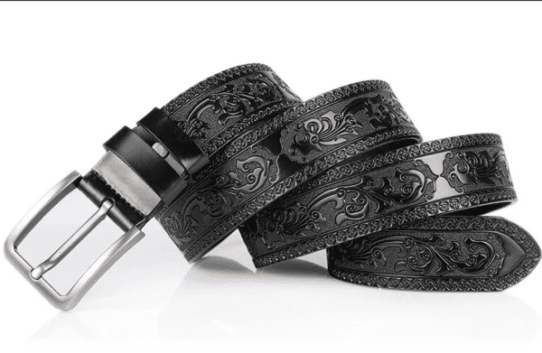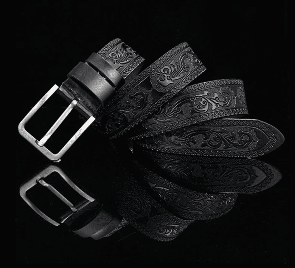 Der schwarze Gürtel mit edlem Flower-Tooling-Muster verbindet klassische Eleganz mit einem Hauch Western-Flair. Die fein gearbeiteten, floralen Prägungen verleihen dem Gürtel einen besonderen Charakter und machen ihn zu einem stilvollen Blickfang – ob im Reitoutfit, zur Jeans oder als Akzent im Alltag.