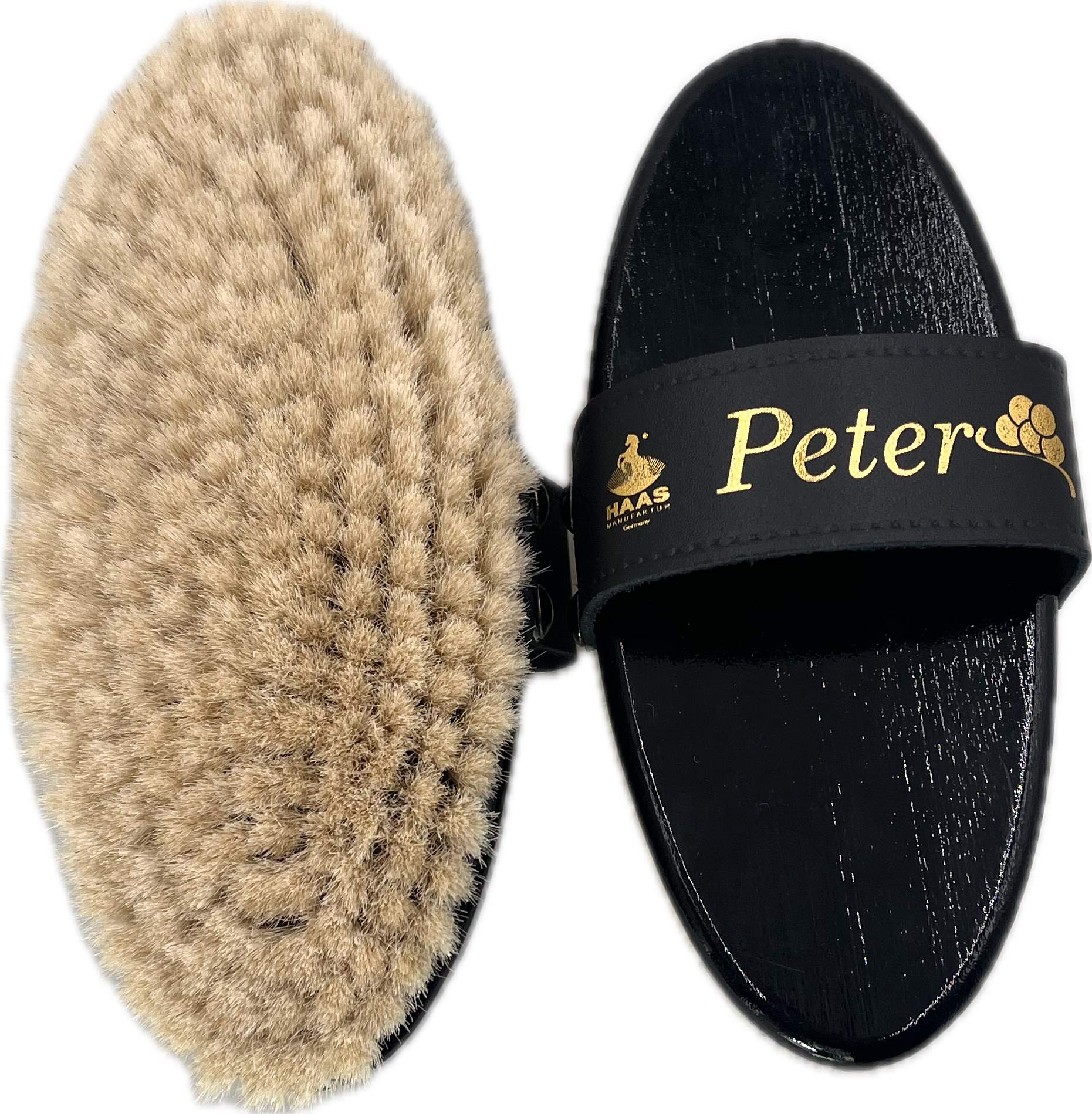 Der "Ziegen"-Peter ist eine kuschelweiche Bürste aus zertifiziertem, lackiertem Buchenholz mit 100% weichem Ziegenhaar. Peter sorgt dafür, dass Dein Pferd immer glänzt!