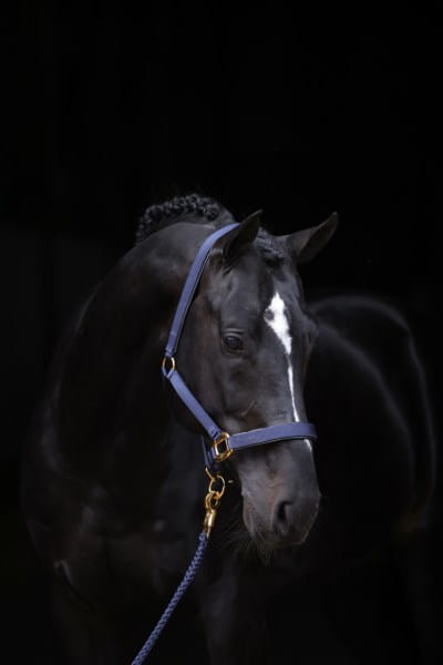 Schönes und hochwertiges Halfter mit goldenen Beschlägen.