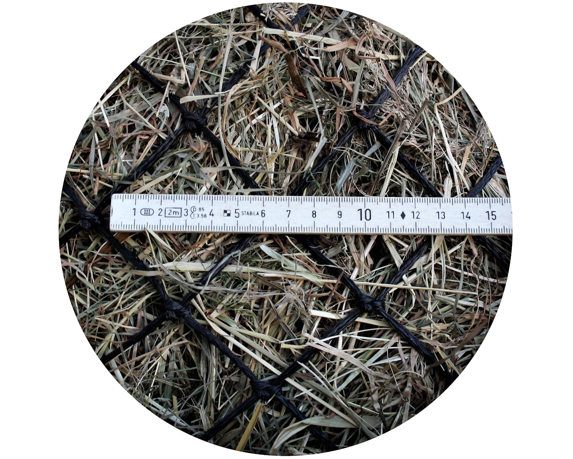 Das Heunetz ist wirklich groß und fasst einiges an Heu.Material: 100% PolyäthylenMaße: unbefüllt ca. 106 cm langMaschengröße: ca. 3,0 x 3,0 cm