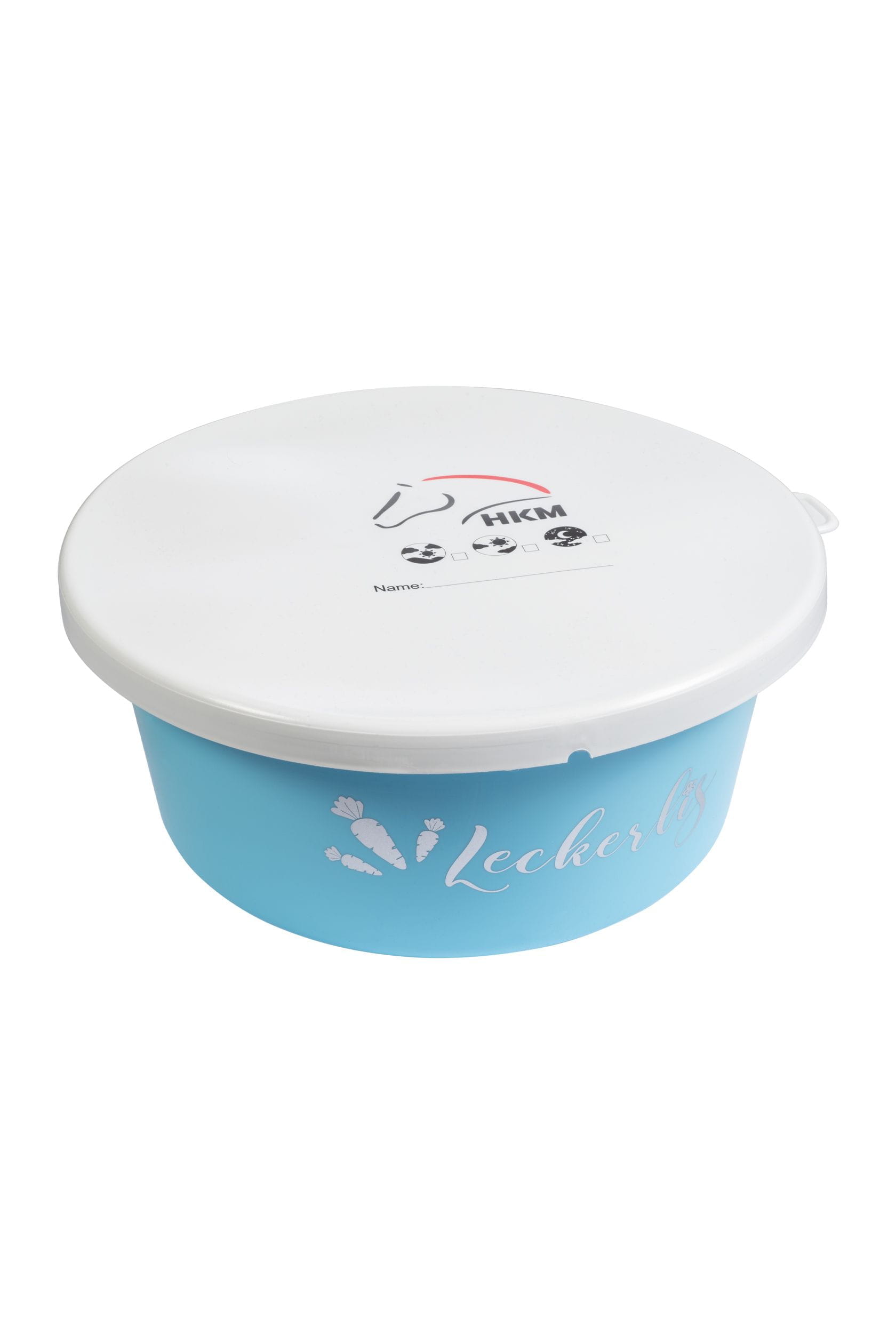 Praktische Müslischale zur Vorbereitung von Futter mit einem Deckelaufruck zur Bestimmung des Fütterungszeitpunktes.