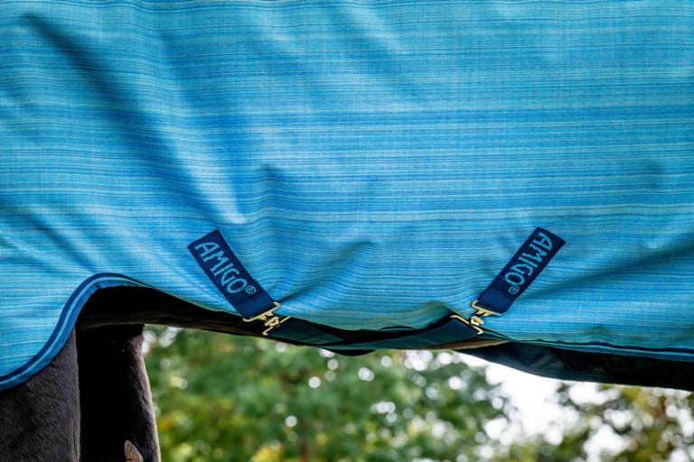 Zusätzlich möchten wir Ihnen noch eine interessante Information mitteilen: Horseware Ireland hat sich mit der Produktlinie "WE CARE" dem Ziel verschrieben, eine nachhaltige Produktionsmethode zu etablieren und vorhandene Materialreste wiederzuverwenden. Die Amigo Hero 900 Revive Plus Decke wird aus übergebliebenen Garnen der Deckenproduktion hergestellt und präsentiert ein einzigartiges Design mit einzigartigen Mustern. Trotz der Verwendung von Restmaterialen gewährleistet die Decke weiterhin die gewohnte Qualität, Stärke und Zuverlässigkeit der ursprünglichen Amigo Hero 900.
