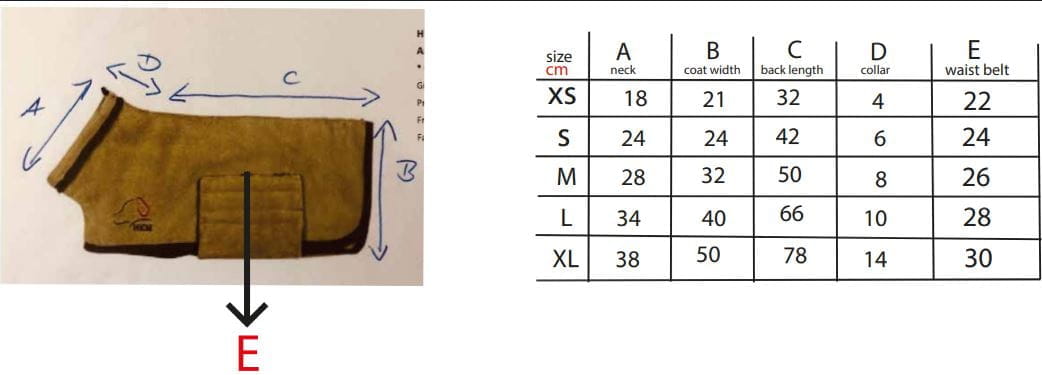 Der Hundemantel wird über den Kopf gezogen und kann im Umfang durch einen Klettverschluss reguliert werden.