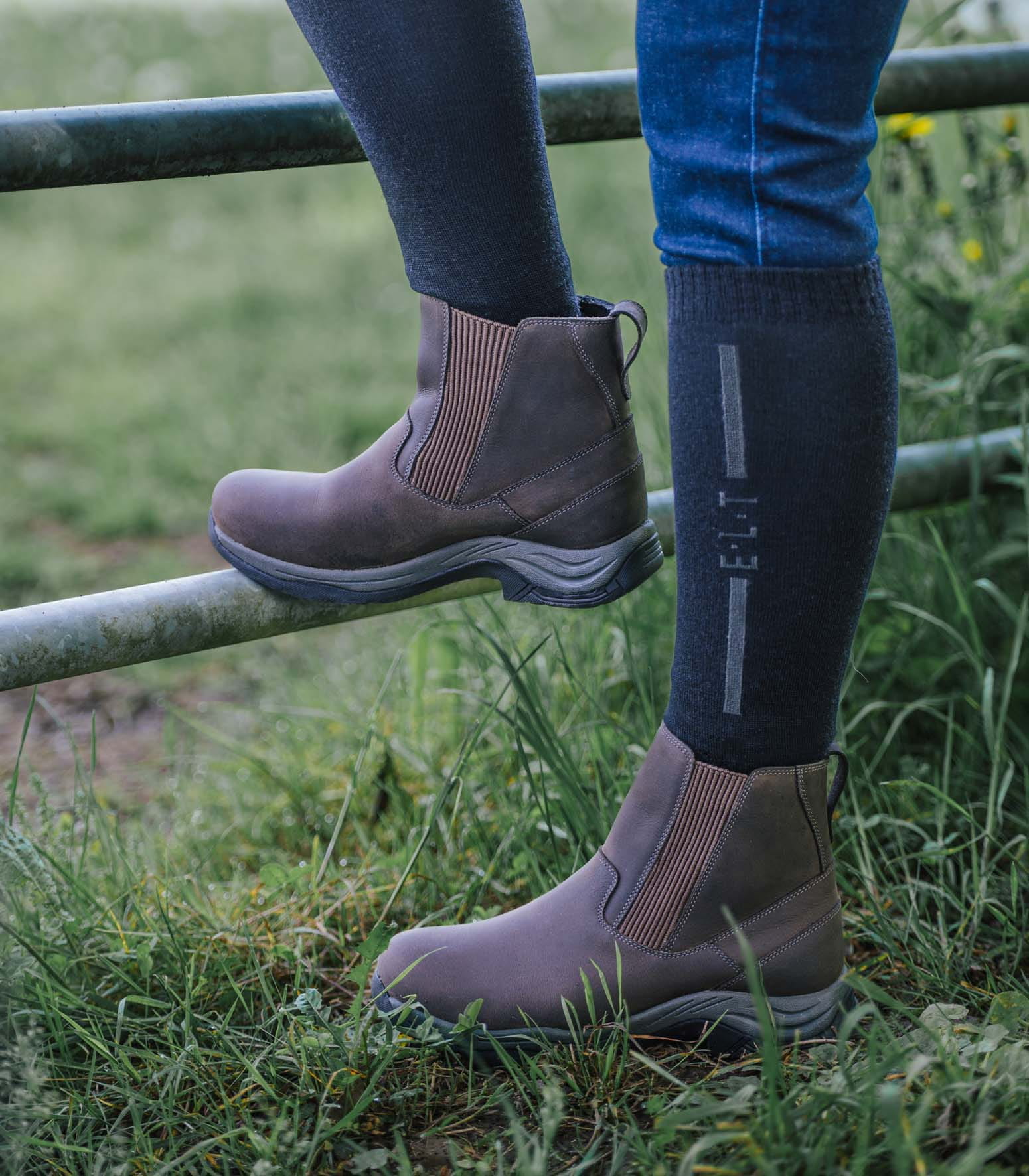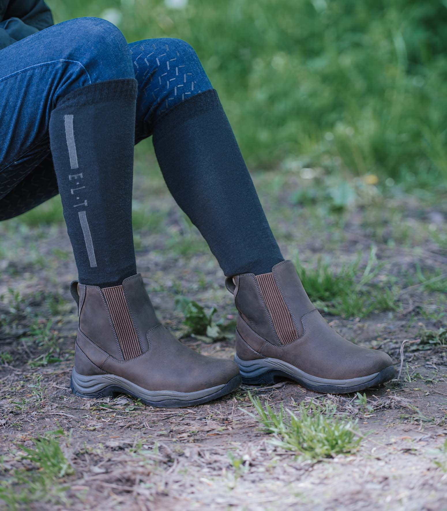 - Reitgerechte Profilsohle mit festem Absatz und graviertem ELT Logo