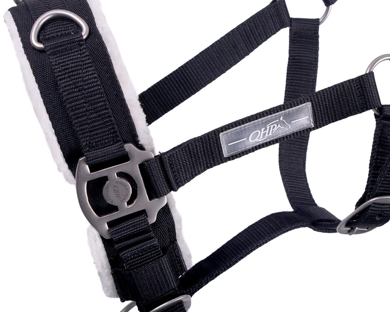 Schöner, weich unterlegter Kappzaum aus stabilem Material. Er ist mit 3 Edelstahl D-Ringen auf dem Nasenriemen ausgestattet.Der Kappzaum ist 3-fach verstellbar. Er kann beim Longieren und der Bodenarbeit benutzt werden.