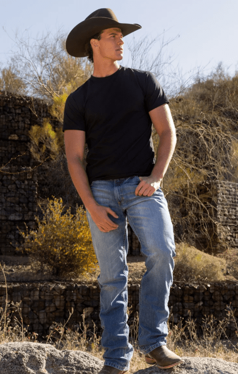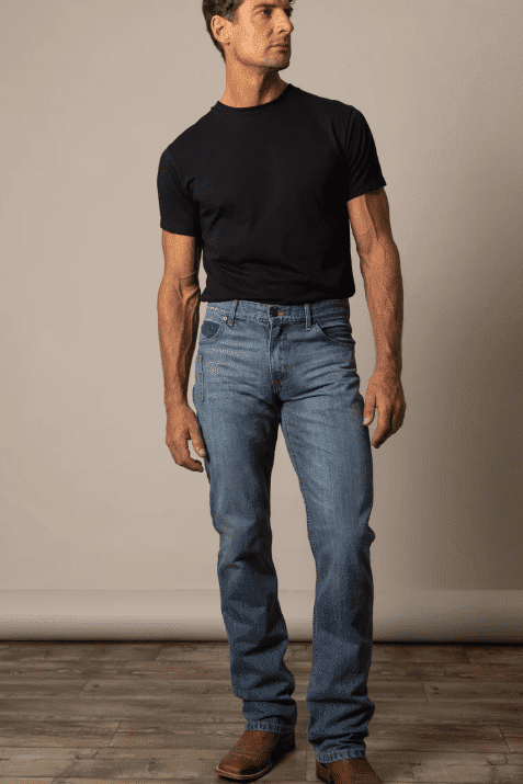 Mit ihrem klassischen Mid-Rise-Schnitt, einem schmalen Beinverlauf und einem Bootcut-Beinabschluss bietet sie eine bequeme, aber körperbetonte Passform – perfekt für Alltag, Arbeit oder das nächste Rodeo. Der leichte Used-Look im Light Wash verleiht der Jeans einen lässigen, eingetragenen Stil.