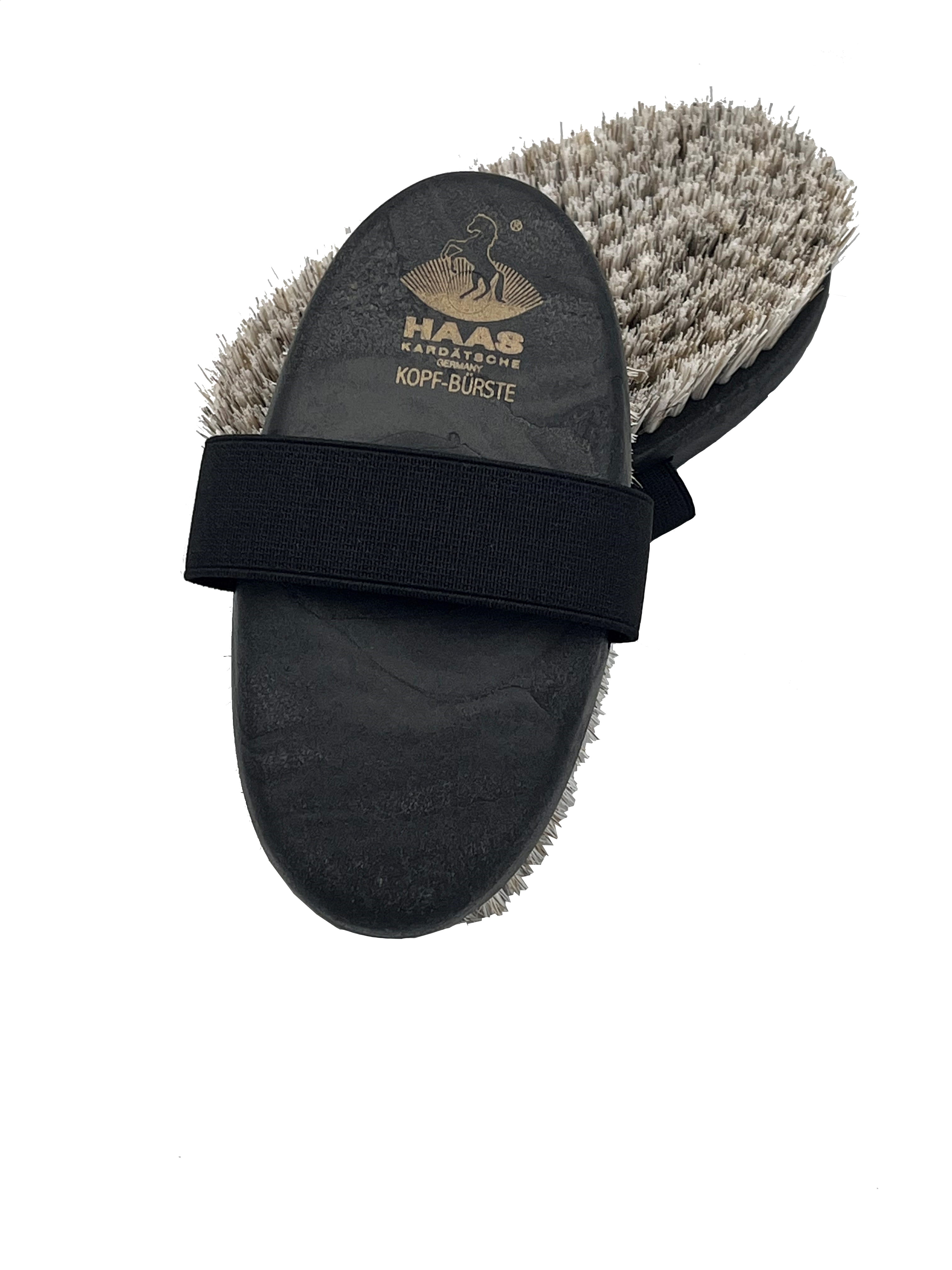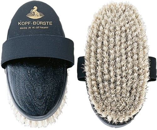 Die empfindlichen Bereiche des Pferdekopfes benötigen eine spezielle Bürste. Hierfür ist diese Kopfbürste besonders gut geeignet. Ihre handliche Form und die weichen Borsten verwöhnen den Kopf des Pferdes und sorgen für Pflege und Glanz.