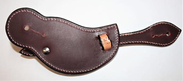 Zweifarbiger Sporenriemen für Damen mit Basketpunzierung. Die Schnalle dieses Sporenriemen ist schlicht Silber. Das Leder dieser Sporenriemen ist latigo farben lackiert mit chestnutfarbenen Highlights. Die Schnallen lassen sich mittels Chicagoschrauben nach belieben tauschen. In der mittleren Einstellung hat dieser Sporenriemen ca 20cm von Sporenloch zu Sporenloch. Er lässt sich aber noch etwas verstellen.