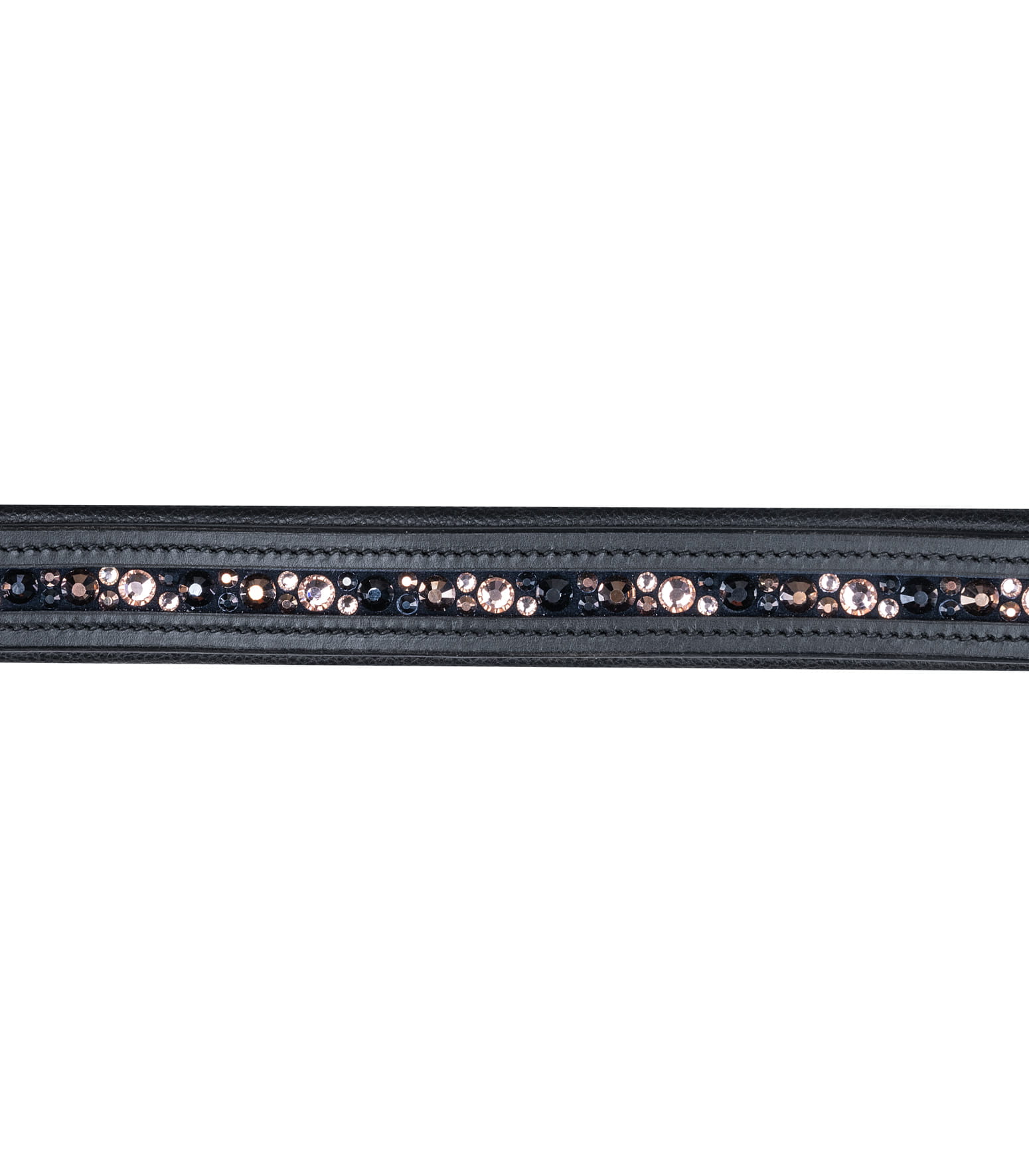 Elegantes Lederhalfter von Waldhausen mit weich gepolstertem Nasenriemen und Genickstück. Mit dekorativen Glitzersteinen auf dem Nasenriemen. Beidseitg verstellbares Genickstück und einfach verstellbarer Kinnriemen.