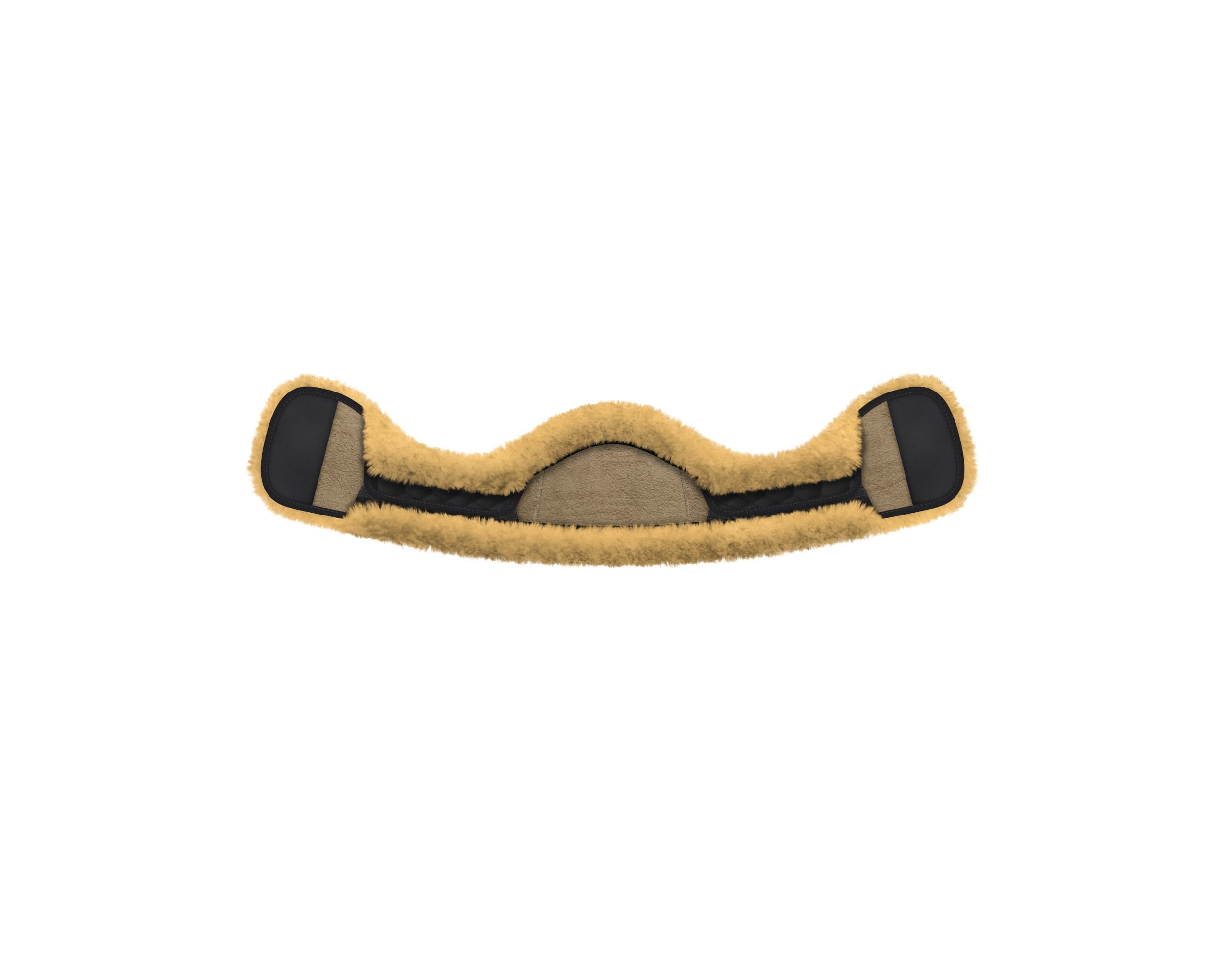 Der in Handarbeit gefertigte Gurt ist auf der einen Seite mit echtem Lammfell und von der anderen mit einem robusten und strapazierfähigen Steppstoff ausgestattet. Die innere, kürzere Sichelform gehört nach vorne, in Richtung der Vorderbeine. Die lange, konvexe Außenseite liegt zum Bauch hin. Die anatomische Form passt sich der Bauchwölbung an und verhindert dadurch ein Verrutschen. Der Gurt eignet sich für Pferde mit der Gurtlage vor der Sattellage oder mit "mehr " Bauch. Durch den speziellen Schnitt wird Ellenbogenfreiheit gewährleistet.