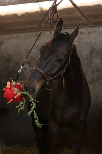 Wenn ein Pferd Boxenruhe verordnet bekommt, ist der Fun Play Ball eine schöne Beschäftigung, die gerne angenommen wird.