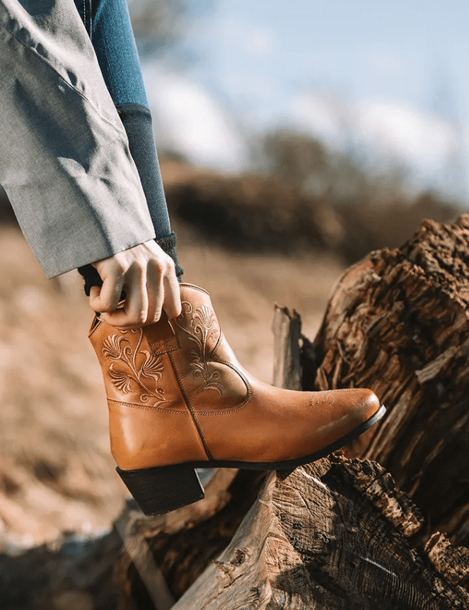 Ein klassisch handgefertigter, westlich inspirierter Kurzstiefel aus weichem, komfortablem Full-Grain-Leder. Das Modell überzeugt durch seine traditionelle Western-Zierstickerei sowie eine robuste, langlebige Laufsohle. Die schlanke, vom Westernstil geprägte Fußform basiert auf einem europäischen Leisten und sorgt für eine elegante Silhouette und hohen Tragekomfort.