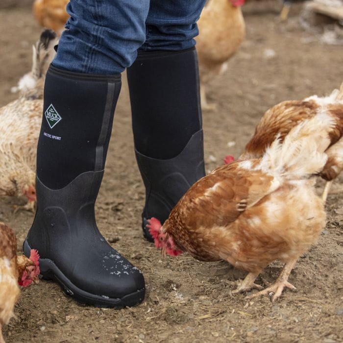 Der Muck Boot Arctic Sport in schwarz ist der hohe Gummistiefel für extreme winterliche Wetterbedingungen. Diese Stiefel sorgen mit ihrem weichen Fleecefutter und ihrem Innenstiefel aus 5 mm starkem Neopren für die ultimative Wärmeisolierung bei extremer Kälte. Das Stretch-Fit-Material des oberen Teils sorgt für hohen Tragekomfort und hält kalte Luft außerhalb und warme Luft innerhalb des Stiefels, während es sich größeren Wadenumfängen perfekt anpasst. Diese qualitativ hochwertigen Sportstiefel besitzen eine geformte EVA-Sohle für höchsten Komfort sowie einen zusätzlichen 2 mm starken Thermoschaum für zusätzliche Wärme. An besonders matschigen oder eisigen Tagen bietet die robuste und langlebige Laufsohle mit doppelt verstärktem Spann- und Fersenbereich den ultimativen Schutz.