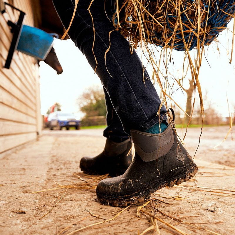 Der optimale Begleiter, um "fix" die Tiere abends im Stall zu füttern. Schnelles reinschlüpfen, kombiniert mit einer griffigen Sohle, um auch auf rutschigen Böden Halt zu haben.