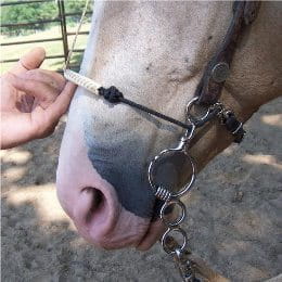 Um den Nasenriemen an die Pferdenase anzupassen, kann das Leder eingeweicht werden. Er kann auch durch einen stärker wirkenden Nasenriemen aus Rohleder ausgetauscht werden, die auf Anfrage erhältlich sind.