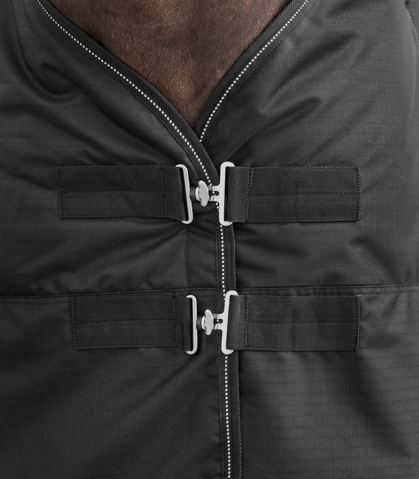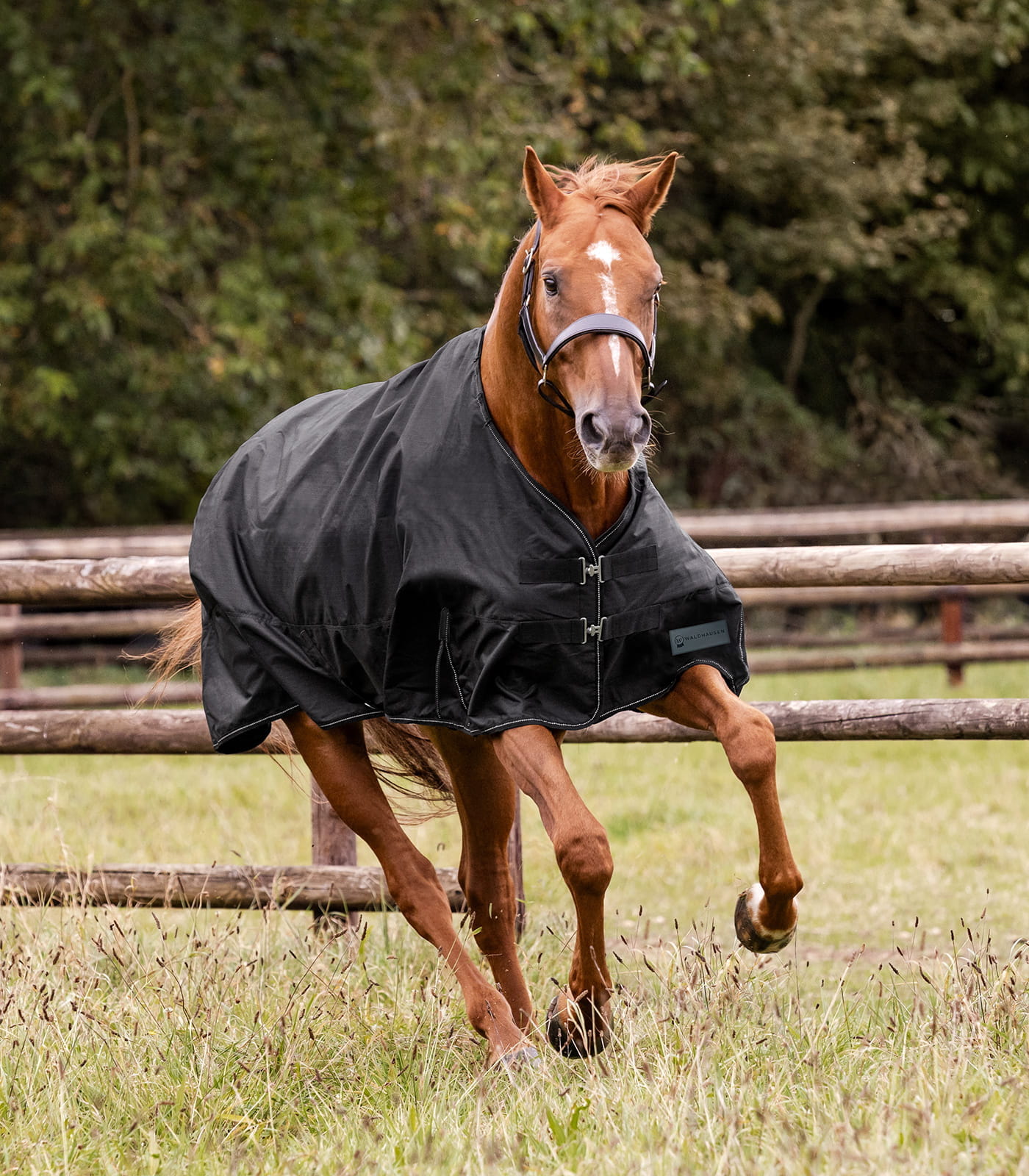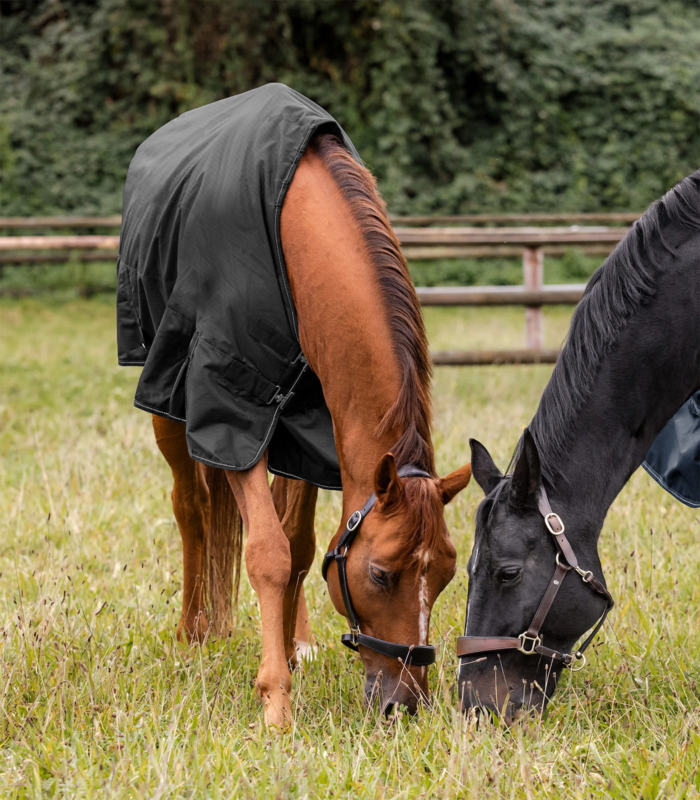 Mit der Waldhausen Nordic Outdoordecke bieten Sie ihrem Pferd einen optimalen Outdoor-Komfort an kühlen Tagen. Die doppelten T-Frontverschlüsse sorgen für eine gute Passform. Das Einfassband mit reflektierenden Details erhöht die Sichtbarkeit bei schlechten Lichtverhältnissen. Bewegungsfreiheit ist durch die Gehfalte gegeben. Das 600 Denier Außenmaterial ist strapazierfähig und hält ihr Pferd warm und trocken.