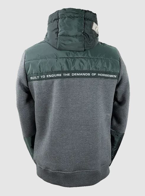 Eine ideale Fusion aus unserer robusten Drei-Faden-Sweatshirt-Ware und ultraleichtem Nylon zeichnet die OS Unisex Sweatshirt Pro Shield Jacke PATRICK in melange coal aus. Das Vorderteil und die Kapuze bestehen aus wasserabweisendem Nylon, welches mit pflegeleichter Polyesterwatte gefüttert ist. Dieser Aspekt stellt sicher, dass die Western Funktionsjacke angenehm leicht bleibt. Die innen aufgeraute und dicke Sweatshirt-Qualität an den Armen und dem unteren Rücken hält dich warm und ermöglicht gleichzeitig einen effizienten Feuchtigkeitsaustausch. Der Materialmix verleiht nicht nur ein modisches Äußeres, sondern bringt auch funktionale Vorteile mit sich. Das klare Design von OS Western Sports Apparel, umgesetzt durch Stickereien und Applikationen, teilweise ton-in-ton gehalten, unterstreicht die Authentizität des Originals. Die Größen dieser Jacke fallen entsprechend aus, weder zu klein noch zu groß. EU-Größe 56/58 entspricht XL.