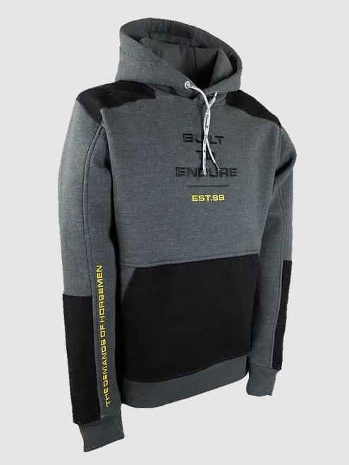 Der OS Workwear Hooded Sweatshirt DAKIN in melange-coal, vereint sportlichen Style mit cleverer Workwear-Funktionalität. Robuste Canvas-Applikationen schützen dich und die beanspruchten Bereiche dieses Westernsport-Artikels, wie Unterarme und Schulterpartien, vor Abnutzung. Der gerade Schnitt sorgt für Komfort und optimale Bewegungsfreiheit – perfekt fürs Westernreiten oder andere Aktivitäten. Hochwertige Stickereien verleihen dem Hoodie einen coolen Look. Egal, ob du eine Hütte reparierst, Holz hackst oder im Alltag unterwegs bist, der DAKIN ist dein zuverlässiger Begleiter. Ein Must-have für alle, die Style, Komfort und Funktion in einem suchen!
