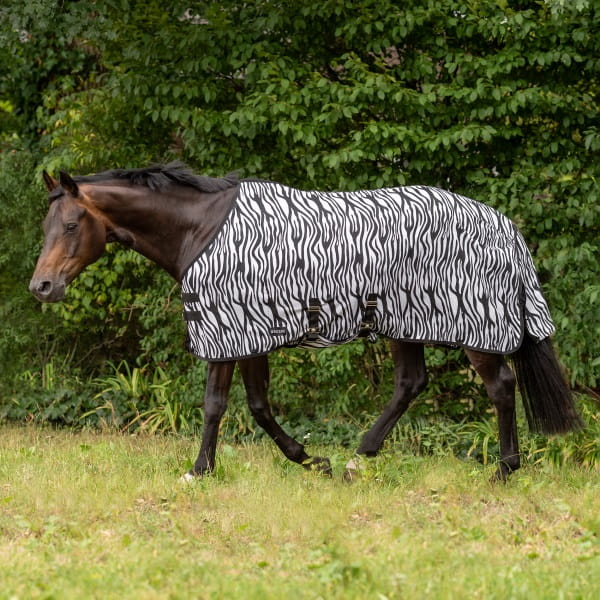 Das schwarz-weiße Zebra-Muster sorgt zusätzlich für einen natürlichen Anti-Bremsenschutz: Studien haben gezeigt, dass Pferde durch dieses Muster von Pferdebremsen nicht mehr als Ziel anvisiert werden